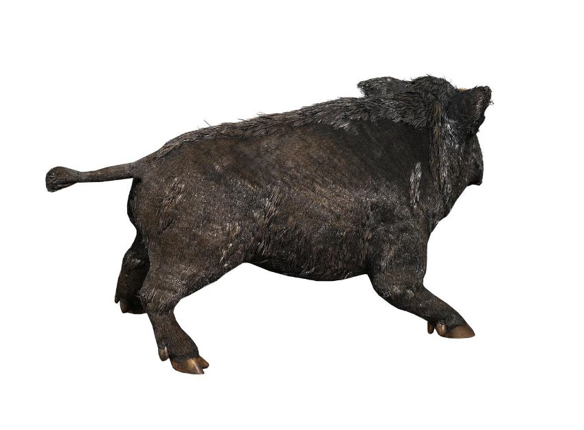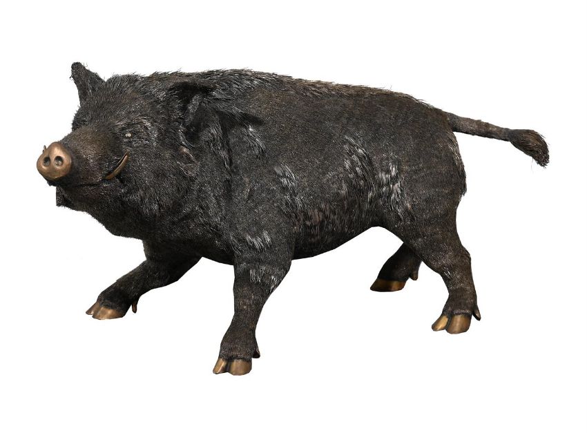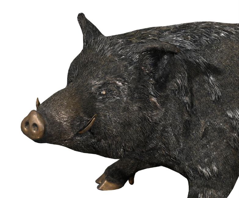 AN ITALIAN SILVER COLOURED MODEL OF A STANDING BOAR BUCCELLATI, MILANO POST 1968 .800 STANDARD, STAMPED U364 With wire hair detail approximately 36cm high, 75cm long, 35cm wide 5142g (165.3 oz) Provenance: Private Collection For a closely related example see Christie's Geneva, Magnificent Jewels, 16 November 2000, Lot 204, (CHF Fr.15,275 incl. BP). Condition Report: One foot does not sit flat on the floor, but stands wellOne foot with minor splitsSome of the wire hair lifting upwardsLight scratches and wear commensurate with age and useCondition Report Disclaimer