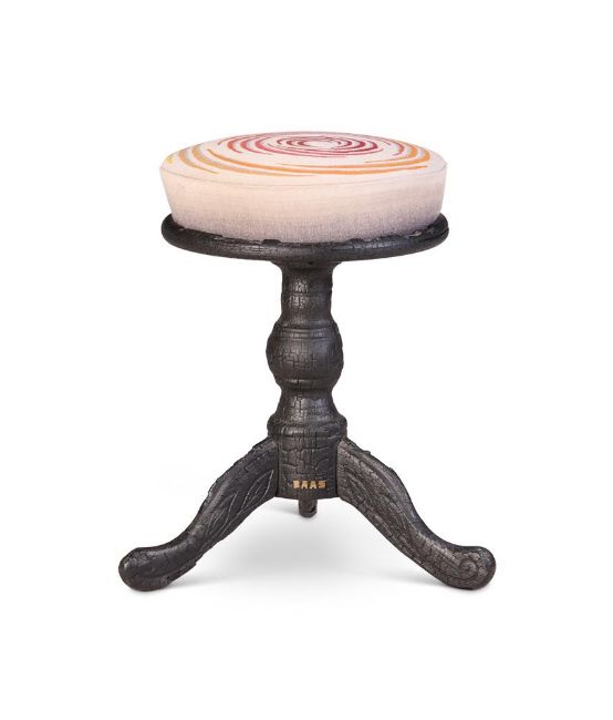 MAARTEN BAAS (DUTCH, B. 1978) 'SMOKE' STOOL; 2013 Charred wood and epoxy resin; with upholstered cushion in fabric designed by Pierre Yovanovitch Applied metal maker's stamps for 'BAAS' and 'Pleyal Paris' 54cm high, 36cm wide (including cushion) Provenance: Carpenters Workshop Gallery, Paris, 2014 Condition Report: Marks, knocks, scratches abrasions consistent with age and use. Charred by design, natural variation due to medium use. Seat revolving freely on stem, presentable order of upholstery. Condition and use reflect its lack of significant age and light use in domestic setting. See additional images  Condition Report Disclaimer