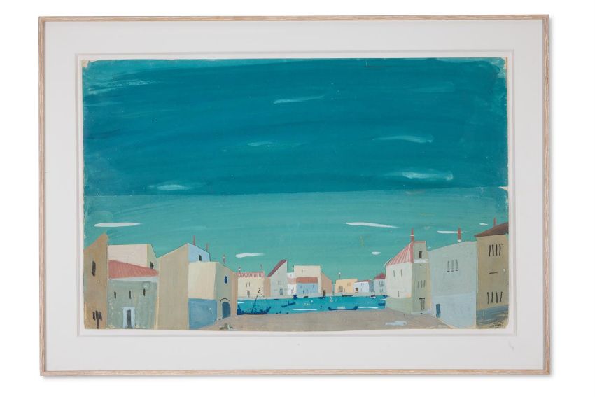λ ANDRÉ DERAIN (FRENCH 1880-1954) ETUDE DE DECOR POUR LE BARBIER DE SEVILLE Gouache, ink and collage Stamped with Atelier André Derain stamp (lower right) 41 x 65cm (16 x 25½ in.) Executed circa 1953. In the early 1950s, Derain designed stage sets for Mozart's Abduction from the Seraglio and Rossini's The Barber of Seville at the Festival d'Aix-en-Provence.Provenance: Loiseau-Schmitz, Saint-Germain-en-Laye, Important Ensemble d'Oeuvres d'André Derain, 24 March 2002, lot 485 Condition Report: Unexamined out of glazed frame. Some discolouration to the sheet at the edges. The lower right corner is missing, although this is most probably original to the work. Some minor lifting, in places, to the sheets where they have been stuck down and some light associated undulation. Otherwise, in overall good condition. Condition Report Disclaimer