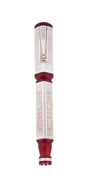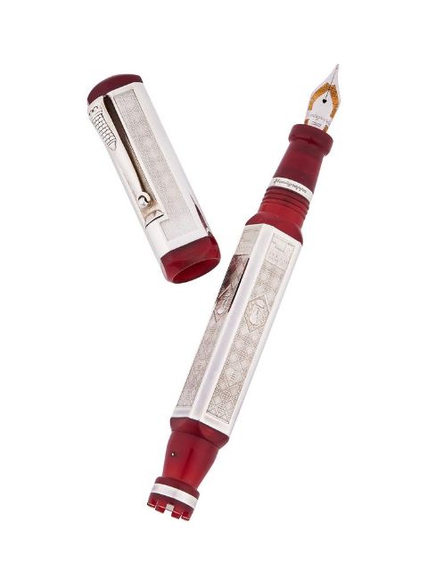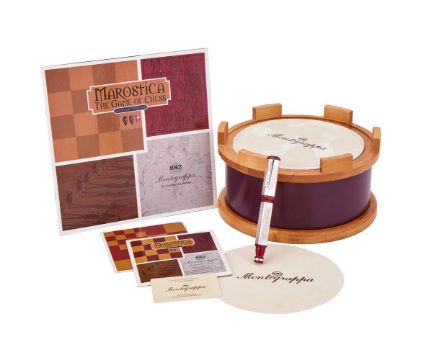 MONTEGRAPPA, MAROSTICA, THE GAME OF CHESS A LIMITED EDITION FOUNTAIN PEN, NO. 1228/2000, CIRCA 2000 Cap and Barrel: Silver coloured and red resin cap and barrel, engraved with a chess board, the cap with a clip, the barrel end formed as a rook, stamped with Milano post 1968 .925 standard mark Nib and Filling System: Medium two tone gold coloured nib, piston filling system, inked Accessories: Original Montegrappa box, certificate of authenticity, guarantee card, information book, CD-ROM, polishing cloth and outer card packaging Condition Report: The pen is lightly dip inked, but otherwise almost unused. No damage or defects to the pen, the silver might benefit from wiping with a silver cloth. The packaging is mostly in good condition, except a Montegrappa white pen pouch which has degraded.Condition Report Disclaimer