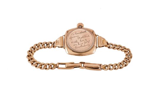 ROLEX, OYSTER UNICORN, REF. 274.789 A 9 CARAT GOLD BRACELET WATCH, NO. 24567, CIRCA 1925Movement: Manual wind, 15 jewels Case: 9 carat gold case, screw down crown, screw down case back, engraved To Campbell from Mollie with love on his 21st Birthday Dial: Silvered Bracelet: 9 carat gold bracelet with flexible clasp, hallmarked Birmingham 1936 Size: 28mm, bracelet 17.5cm Signed: Case, dial, movement, crown Accessories: None Condition Report: Movement is currently functioning. Movement has scratches, marks and tarnishing commensurate with general wear visible when viewed under a 4x loupe. Dial appears to be in an average condition with some light marks and scratches when viewed under a 4x loupe. Appears to be signed Jay's but this is wornHands show marks and tarnishing when viewed under a x4 loupe. Glass has some scratches and marks when viewed under a 4x loupe. Case shows light scratches and marks. Crown screws down and has light scratches when viewed under a 4x loupe. Bracelet has light scratches and some signs of light stretching to links. Clasp is currently functioning and shows light scratches and marks. Bracelet measures approximately 17.5cm including case.31g grossThis lot does not come with box or papers.Dreweatts 1759 do not guarantee the working order or accuracy of any lots sold. Due to opening of the case back we recommend this watch is re-sealed by a qualified technician to ensure any stated water resistance is achieved.If you should have any further questions regarding this lot, please contact the Watch Department on 01635 553 553 or at watches@dreweatts.com           Condition Report Disclaimer