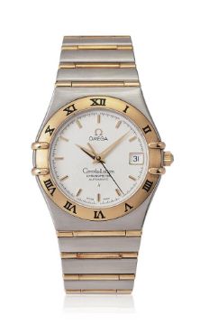 OMEGA, CONSTELLATION A BI-METAL BRACELET WATCH WITH DATE, NO. 80704716Movement: Automatic Case: Stainless steel case, gold coloured bezel, snap case back Dial: Silvered Bracelet: Omega bi-metal bracelet with fold over clasp Size: 35mm, bracelet 17cm Signed: Case, dial, crown, clasp Accessories: Omega service case Condition Report: Movement is currently functioning. We have been unable to gain access to the movement to be able to report its condition. Dial appears to be in a generally good condition with no marks visible when viewed under a 4x loupe. Hands appear to be in a generally good condition.Glass appears free of significant scratches or marks when viewed under a 4x loupe. Case appears to be in good condition with minor scratches and marks. Crown has light scratches when viewed under a 4x loupe. Bracelet appears to be in a generally good condition, with light scratches and no signs of significant stretching, twisting or distortion of the links. Clasp is currently functioning and appears to be in good condition. Bracelet measures approximately 17cm including case.This lot comes with a service box but no papers.Dreweatts 1759 do not guarantee the working order or accuracy of any lots sold. We recommend this watch is tested by a qualified technician to ensure any stated water resistance is achieved.If you should have any further questions regarding this lot, please contact the Watch Department on 01635 553 553 or at watches@dreweatts.com           Condition Report Disclaimer