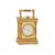 A SWISS GILT BRASS MINIATURE MINUTE-REPEATING CARRIAGE TIMEPIECEUNSIGNED, PROBABLY GENEVA, CIRCA 1900The circular frosted eight-day keyless winding movement with five-wheel going train, straight-line lever escapement regulated by sprung bimetallic balance and with push button repeat sounding on a graduated pair of gongs the hours on the larger followed by ting-tang quarters on both and finally the minutes on the smaller, the 1.25 inch circular silvered brass dial applied with vertically aligned gilt Arabic numerals and with gilt spade hands set behind circular glass with canted gilt bezel insert, the frosted gilt Anglaise type case of Mignonette No. 1 size with hinged reeded baton carrying handle over repeat plunder to top, moulded frieze with fluted band insert and stylised fluted three-quarter Corinthian inspired column uprights to angles with satin-gilt panel infill between, on stepped moulded skirt base bordered with a conforming fluted band and with sliding cover to the underside revealing winding/setting crown, micrometer regulation adjustment disc and stamped serial number 257099; with original Morocco leather covered carrying case with two-part hinged front revealing a green silk and velvet lined interior.The timepiece 8.5cm (3.375ins) high with handle down, 5.5cm (2.25ins) wide, 4.5cm (1.75ins) deep; the case 11cm (4.25ins) high, 7.5cm (3ins) wide, 6cm (2.375ins) deep. Miniature minute-repeating carriage timepieces were developed by Swiss makers during the last decade of the 19th century, who utilised their skills as watchmakers to produce high-quality movements such as that used in the present lot. Such Miniature timepieces are called Mignonettes or 'little darlings' and mostly come in three graded sizes with No. 1 being the smallest. Condition Report: Movement is in fairly clean working condition and the minute-repeat function is operating correctly, there is no visible evidence of alteration or noticeable replacements. Although in working in order a precautionary gentle clean/service is advised. The dial has some very light rubbing and mellowing to the silvering and the minute hand may be a replacement (colour differs slightly from the hour hand) but otherwise is in good original condition. The case is also in good original condition with only very light edge rubbing to the gilding and overall very light mellowing. The travelling case is in very good original condition with minimal wear to the silk and velvet linings.Timepiece is complete with integral winder. Condition Report Disclaimer