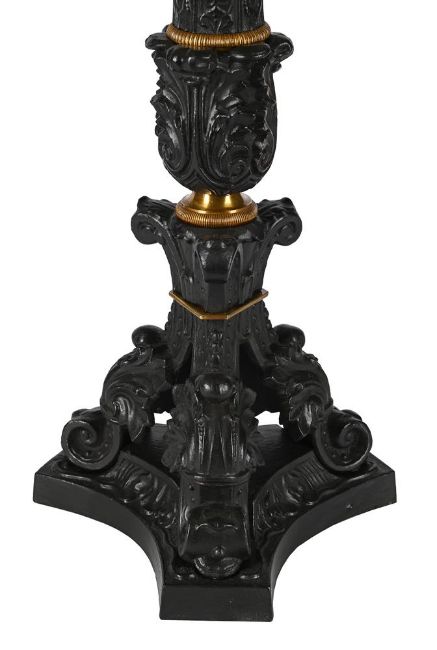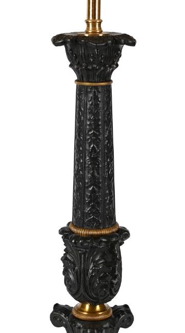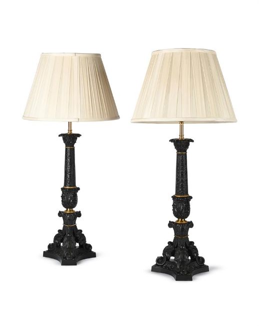 A PAIR OF BRONZED SPELTER TABLE LIGHTS