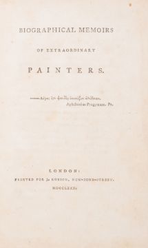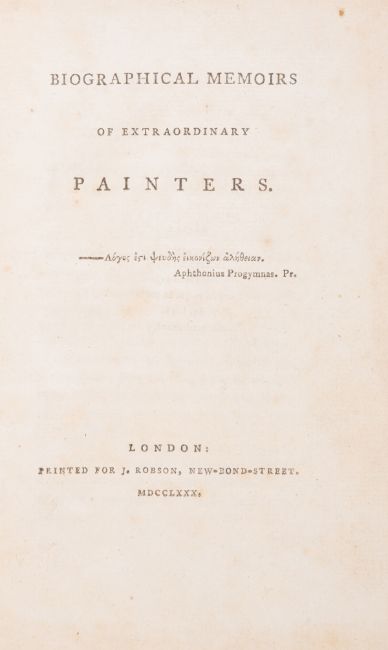 θ [Beckford (William)] Biographical Memoirs of Extraordinary Painters, first edition, with the final errata leaf (sometimes missing), light spotting at beginning and end, engraved bookplate of the Earl of Normanton, contemporary tree calf, gilt, a little rubbed, corners slightly worn, rebacked with gilt spine preserving red roan label, preserved in modern calf-backed marbled board drop-back box, spine ruled in gilt with red morocco label, [Chapman 1.i], 8vo, J.Robson, 1780.