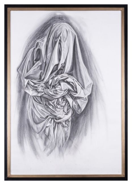 Pen and black ink, charcoal, signed with initials 'K.A./ 2017' in the lower right corner, 1175 x 790 cm (46 1/4 x 31 1/8 in), under glass, silver gilt and black frame, 2017