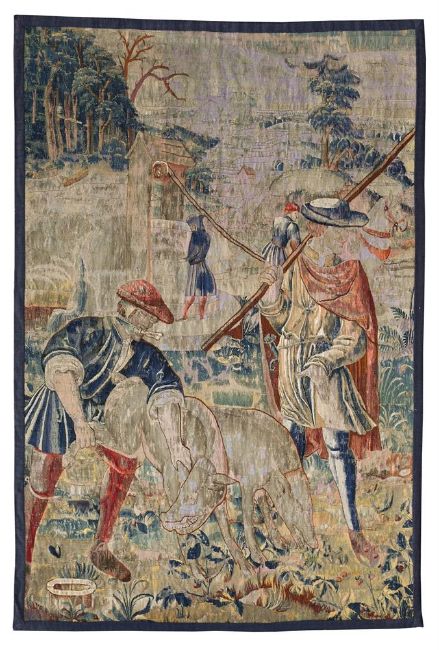 A RENAISSANCE TAPESTRY FRAGMENT DEPICTING 'THE BOAR HUNT' BRUSSELS, LATE 16TH CENTURY approximately 240 x 165cm