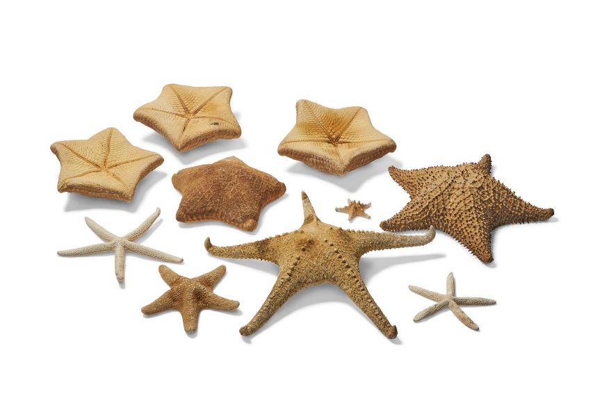Y  FIVE PILLOW STARFISH (CULCITA NOVAEGUINEAE) 24cm wide and smaller Together with other starfish specimens