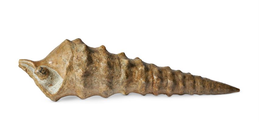A FOSSILISED CAMPANILE GIGANTUM SHELL 52cm long