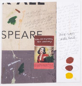 Acrylic, collage and crayon on paper, 2018, signed in black ink on label affixed verso, sheet 390 x 380mm (15 3/4 x 15in)