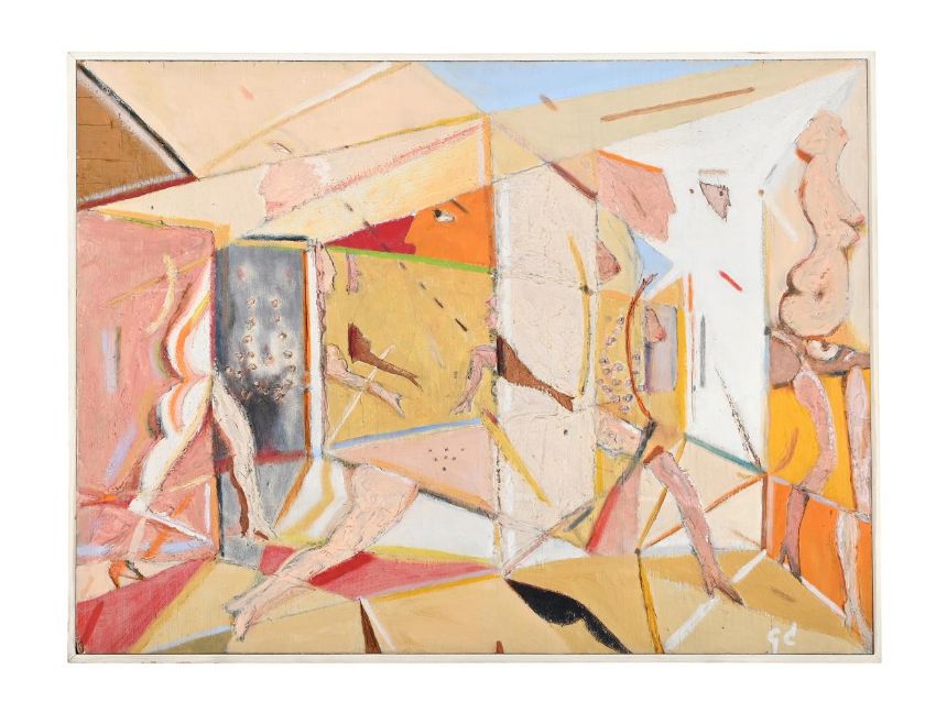 GEORGE MARSHALL COHEN (AMERICAN 1919-1999) DOMUS (FLESH PAINTING V) Oil and gesso on board Signed with initials (lower right); further signed (verso) 45.5 x 61cm (17¾ x 24 in.) Condition Report: Some surface dirt. There are losses to the tips of the upper and lower left hand corners of the board with associated paint loss. Otherwise, the work appears to be in generally good condition.Condition Report Disclaimer
