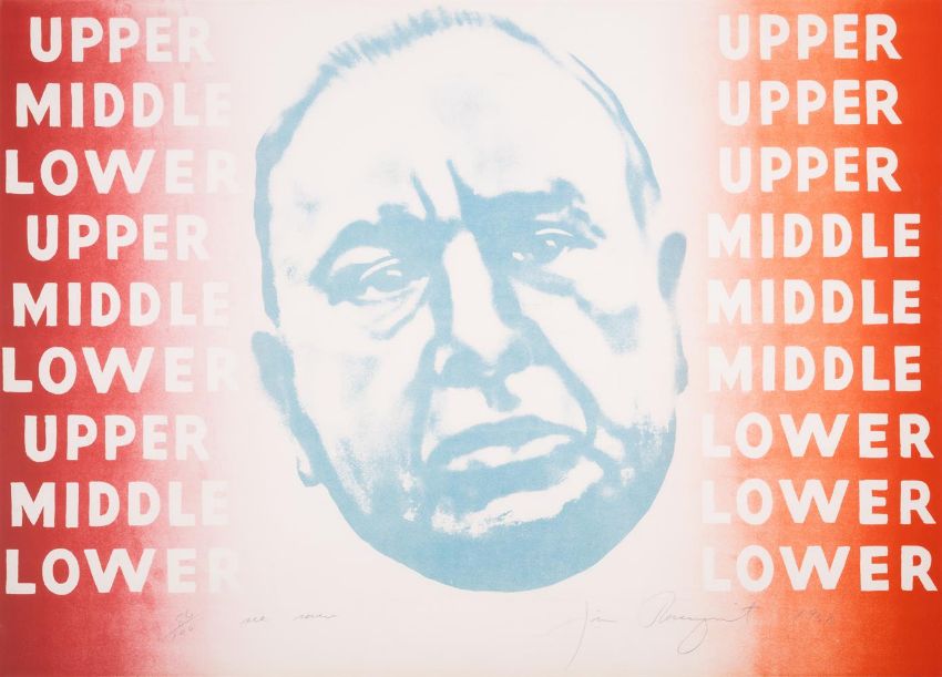 JAMES ROSENQUIST (AMERICAN 1933-2017) SEE-SAW, CLASS-SYSTEMS (GLENN 22) Lithograph printed in colours, 1968 Signed, dated and inscribed 'See Saw' in pencil, numbered from the edition of 100, published by Richard Feigen Graphics, New York, with their blindstamp, on Arches paper, the full sheet printed to the edges Sheet: 61 x 87.2cm (24 x 34 3/8 in) Condition Report: The sheet is hinged to the mount at intervals along each edge. The work appears to be in good original condition. Unexamined out of glazed frame.Condition Report Disclaimer