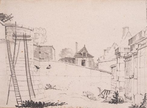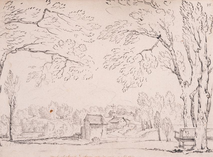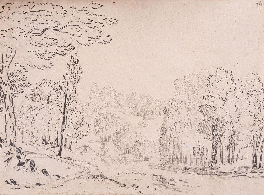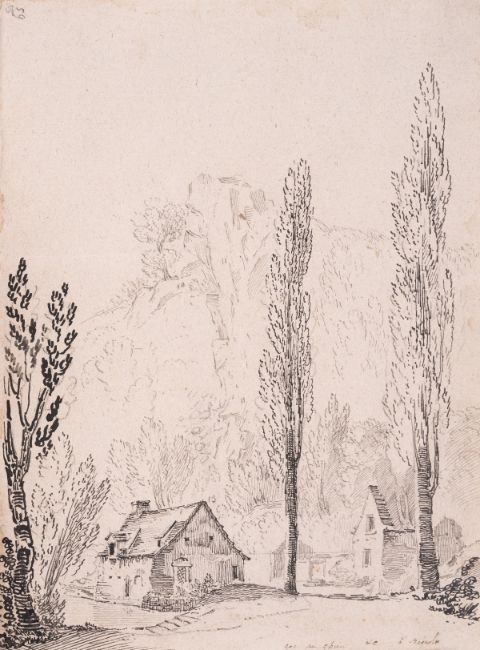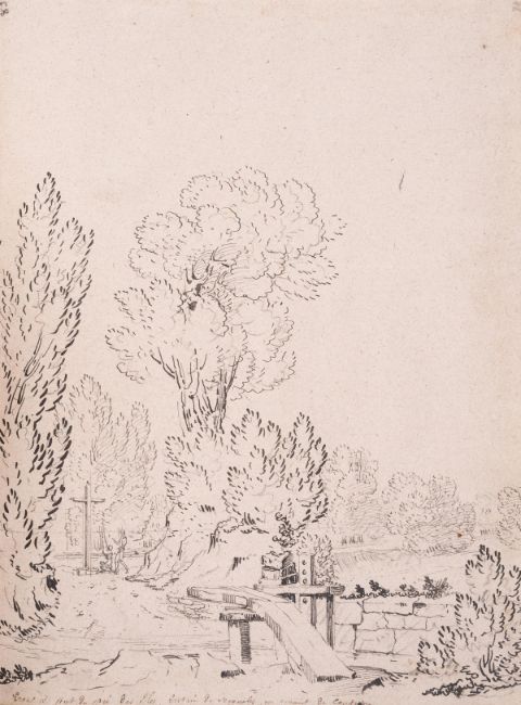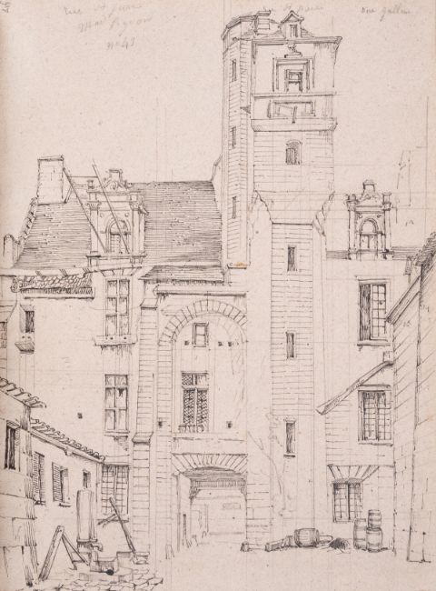 ⁂ Comprehensive sketchbook from an as yet unidentified artist's journey through Normandy, with many drawings of the Château de Caen, local rock formations, tree studies and landscapes, provincial streets and buildings, churches and ecclesiastical sites of interest.