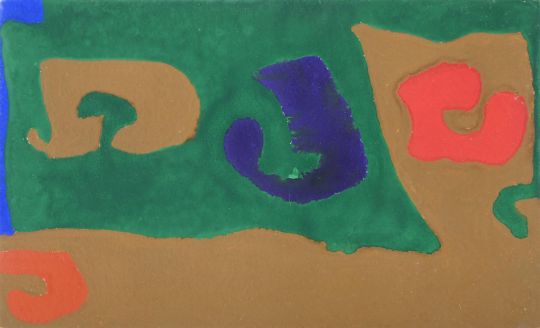 λ PATRICK HERON (BRITISH 1920-1999) MINI MINI 11 : FEBRUARY 1972 Gouache Signed, titled and dated Feb 1972 (to backboard verso) 11 x 17.5cm (4¼ x 6¾ in.)Provenance: A gift from the artist and thence by descent to the present ownerExhibited: St. Ives, Penwith Gallery, The Penwith Society of Arts in Cornwall Autumn Exhibition 1976, September-November 1976, no. 71