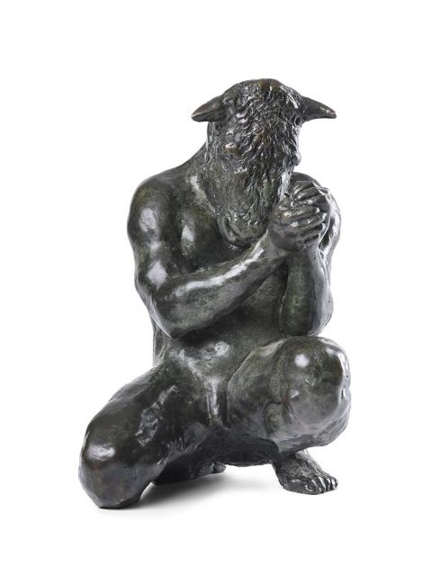 λ BETH CARTER (BRITISH B. 1968) MINOTAUR AND MOTH Bronze Signed with initials and inscribed A.C. (to underside) 24 x 24cm (9¼ x 9¼ in.)Provenance: Acquired directly from the artist