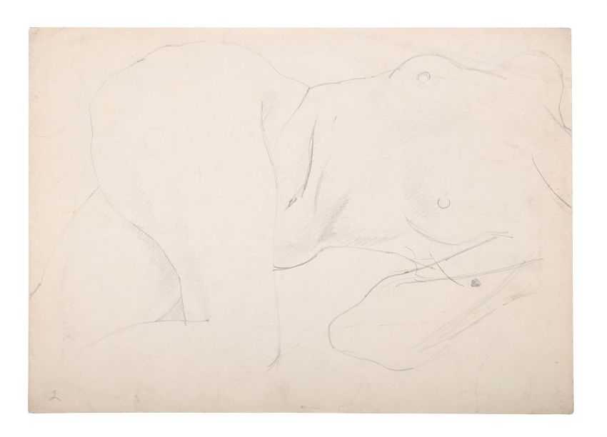 λ SIR STANLEY SPENCER (BRITISH 1891-1959) RECLINING NUDE, STUDY OF PATRICIA Pencil 24.5 x 35cm (9½ x 13¾ in.)Provenance: From the Estate of Sir Stanley Spencer The current drawing may be a sketch for the painting Nude (Patricia Preece), one of two nude paintings that Spencer completed of Patricia in 1935.