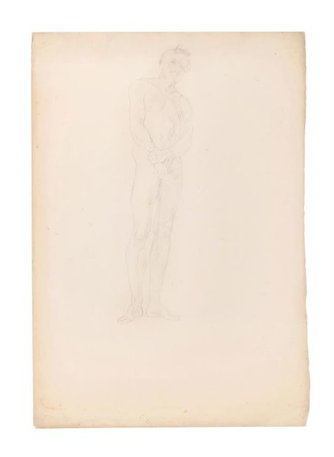 λ SIR STANLEY SPENCER (BRITISH 1891-1959) STANDING MALE NUDE Pencil 53 x 37cm (20¾ x 14½ in.) Unframed Provenance: From the Estate of Sir Stanley Spencer
