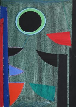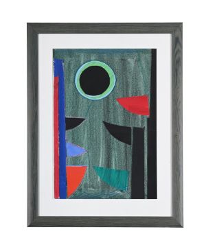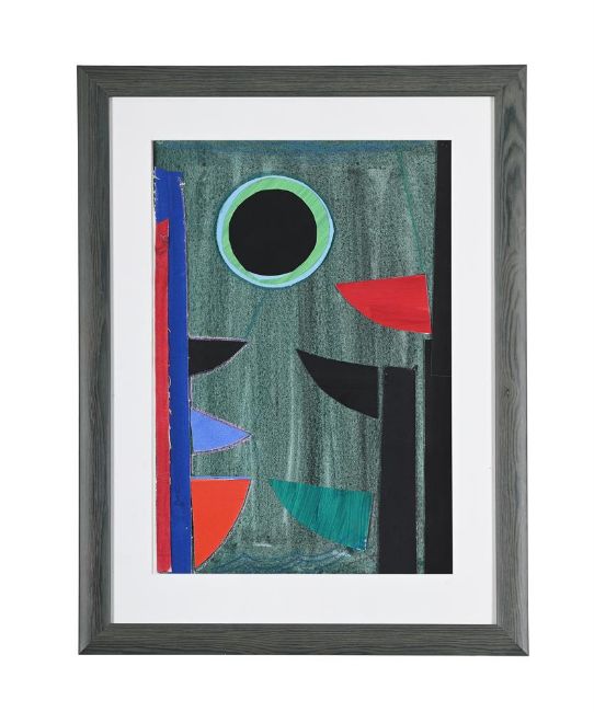 λ SIR TERRY FROST (BRITISH 1915-2003) GREEN & BLACK Q Watercolour, acrylic, chalk, card and collage Signed (lower right) 56 x 38cm (22 x 14¾ in.)This work is the maquette for the screenprint of the same title (K.159). Provenance: Acquired directly from the artist in 1997 Sale, Bonhams, British Cool, 29 March, 2023, lot 107