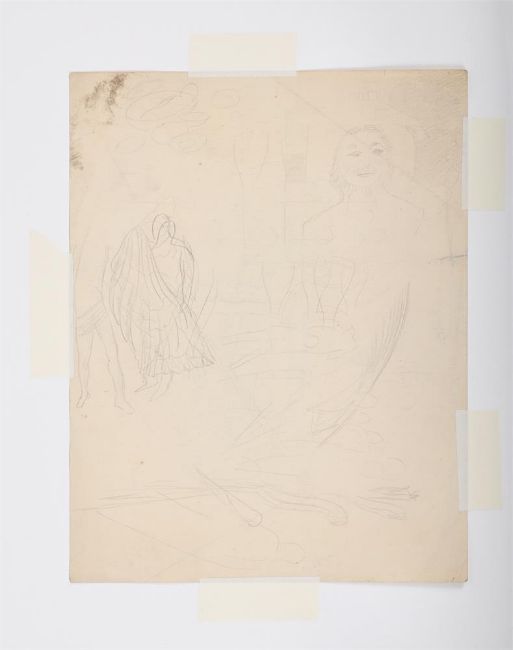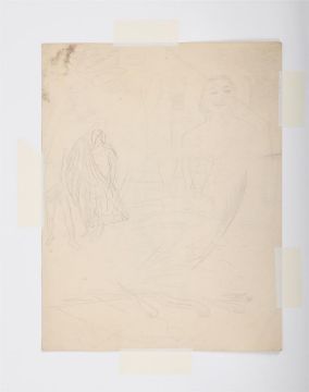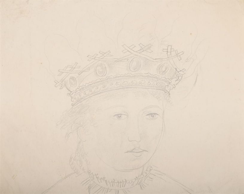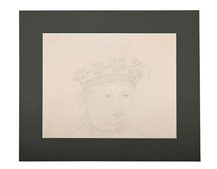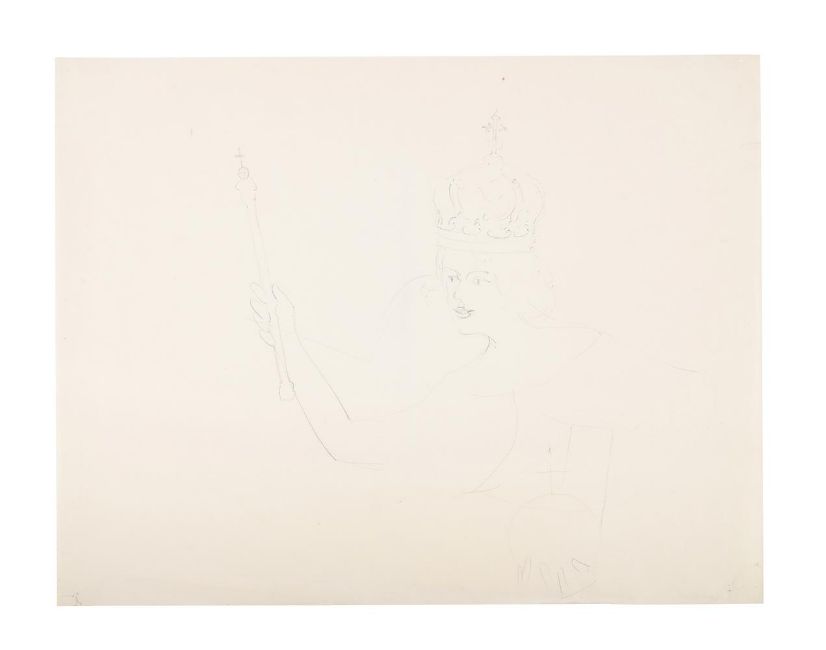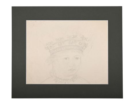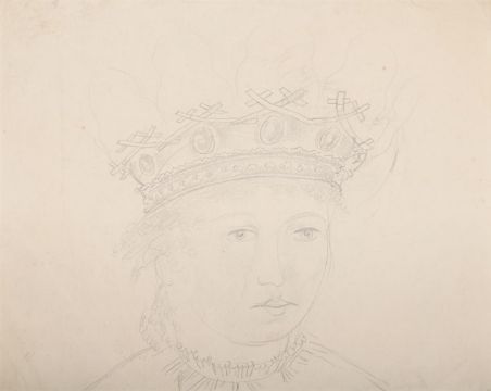 λ SIR STANLEY SPENCER (BRITISH 1891-1959) QUEEN WITH ORB & SEPTRE Pencil 37 x 45cm (14½ x 17½ in.) Unframed Together with another study of Queen by the same hand, Pencil, 22 x 28cm (8 3/4 x 11in.) (2)Provenance: From the Estate of Sir Stanley Spencer