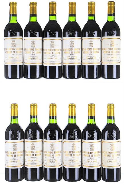 1985 Pichon Longueville Comtesse Lalande 2eme Cru Classe, Pauillac OWC 12x75cl Levels 1 TS. Condition Report: Levels 1 IN, 10 BN, 1 TS, 5 capsules scuffed by owc dividers, 7 slightly loose, 3 labels slightly scuffedCondition Report Disclaimer