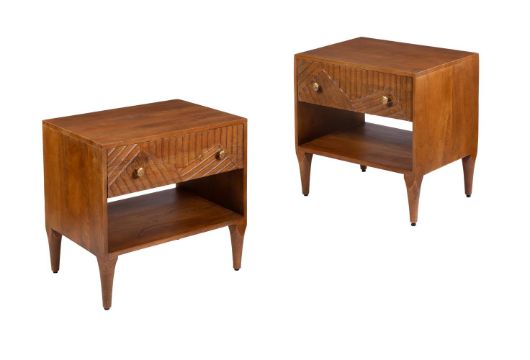 A PAIR OF HARDWOOD BEDSIDE TABLES WITH TEXTURED DRAWER SURFACE LATE 20TH CENTURY each 55cm high, 57cm wide, 40cm deep  Condition Report: PLEASE NOTE: THIS LOT IS NOT AVAILABLE TO VIEW With minor wear, marks and knocks due to lack of age Drawers run smoothly Solid and stable ADDITIONAL IMAGES: Please 'Ask a Question' to request additional images for this lot.Condition Report Disclaimer