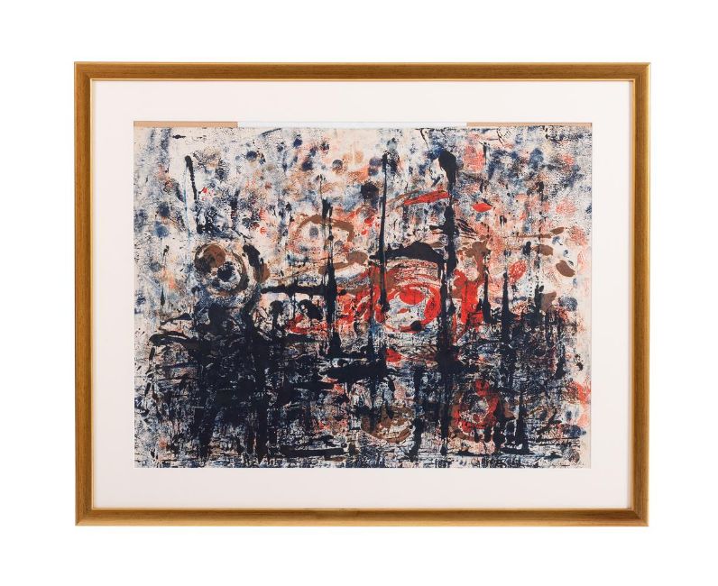 λ JACQUELINE MULLER NARRING (20TH CENTURY) ABSTRACT Acrylic on paper Signed and dated 65 (lower right) 48cm x 64cm (19 x 25 in.) Condition Report: 65cm x 81cm including frame High resolution images are available upon request, please contact the department directly at interiors@dreweatts.comCondition Report Disclaimer