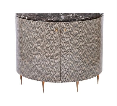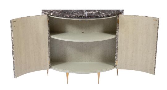 A LACQUERED CABINET WITH MARBLE TOP DESIGNED BY PETER MIKIC, MODERN Of semi-elliptical outline 84cm high, 100cm wide, 40cm deep   Condition Report: As catalogued this is of contemporary make and the overall condition and appearance reflects thisReverse unexamined ADDITIONAL IMAGES: Please 'Ask a Question' to request additional images for this lot. Condition Report Disclaimer