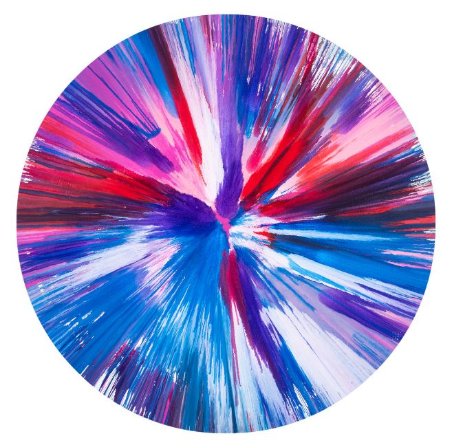 Acrylic and coloured inks on paper, 2009, with the artist's signature stamp and blindstamp verso, and with the inkstamp 'This work was made by/to celebrate the opening/ of Damien Hirst Requiem at the PinchukArtCentre on April 25-26th 2009' verso, diameter 525mm (20 5/8in)