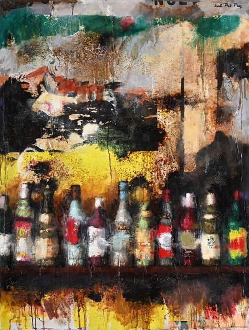Mixed media and collage on canvas