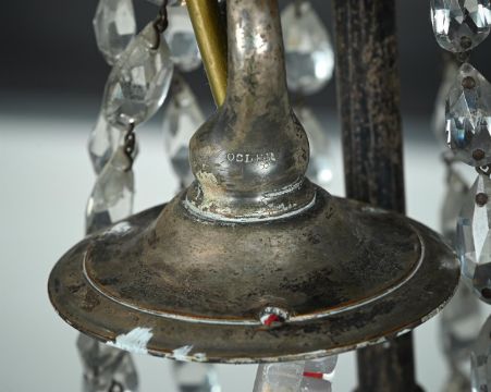 A SILVER PLATED AND CUT GLASS CHANDELIER