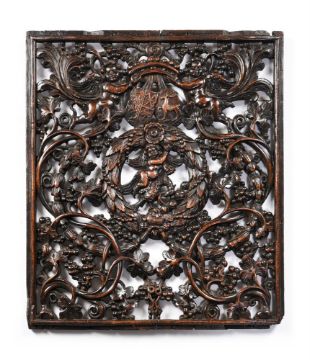 A NORTH EUROPEAN CARVED WALNUT OPEN WORK PANEL