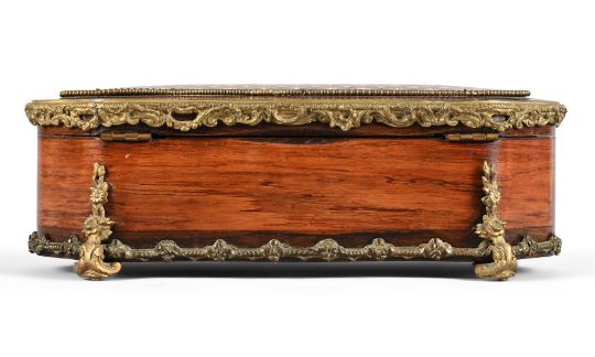 Y A ROSEWOOD, BRASS MOUNTED AND IVORY INLAID GLOVE BOX