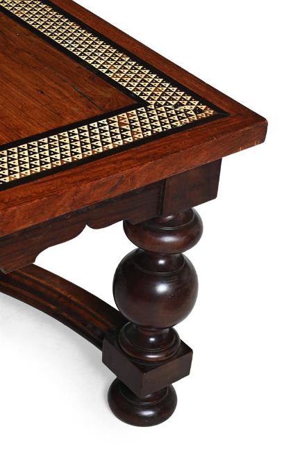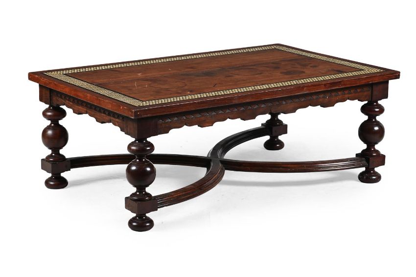 Y AN IVORY AND EBONY INLAID HARDWOOD LOW OR COFFEE TABLE