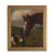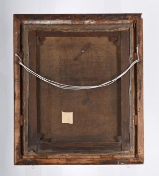 Surface dirt and scattered scratches throughout. A protrusion caused by a tear is present above the horse's head. Abrasions with associated paint loss are present, most notably to the left of the horse's head, to the horse's bridle, and to the lower left corner. Two repaired tears and a patch are present to the verso. Inspection of recto under UV reveals restorations to these tears and an unevenly applied green varnish.