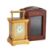 The clock 16cm (6.25ins) high with handle down, 14cm (10ins) wide, 9cm 3.5ins) deep; the case 19cm (7.5ins) high, 13cm (5.125ins) wide, 12.5cm (5ins) deep.