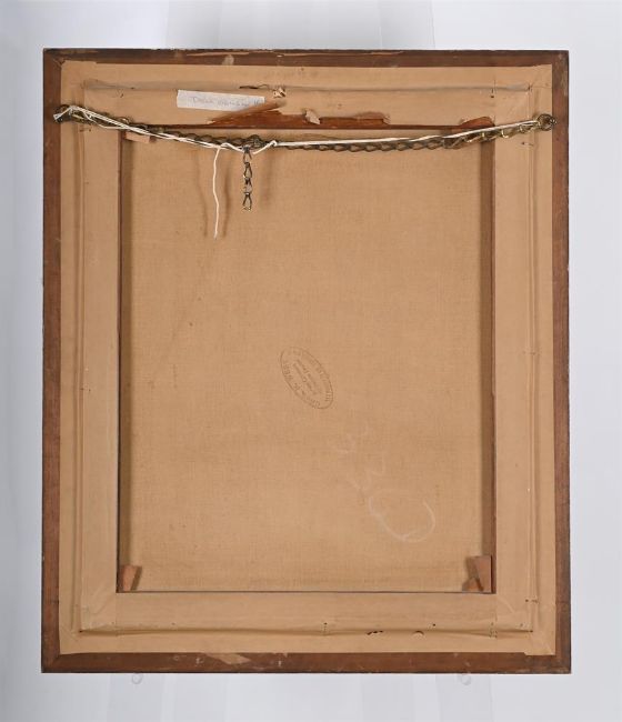 Light surface dirt throughout. The canvas has puckered to the upper right corner. Two minor areas of loss to the lower half of the work. Inspection under UV reveals no obvious evidence of restoration or repair.
