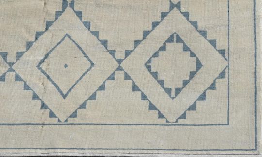 A LARGE CREAM AND BLUE GEOMETRIC CARPET