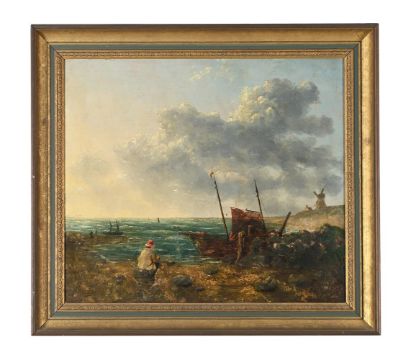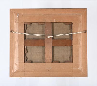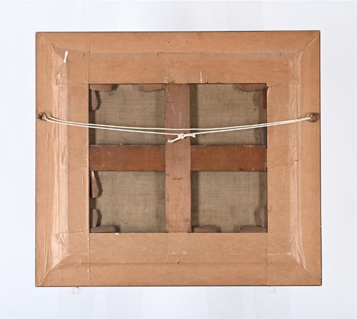 The canvas has been lined. Surface dirt and discolouration throughout. Craquelure is present, with some areas of slight paint separation. Scattered stains and minor flecks of paint loss. Inspection under UV reveals an unevenly applied cloudy varnish and a few scattered retouchings. Overall, this work would benefit from a clean.
