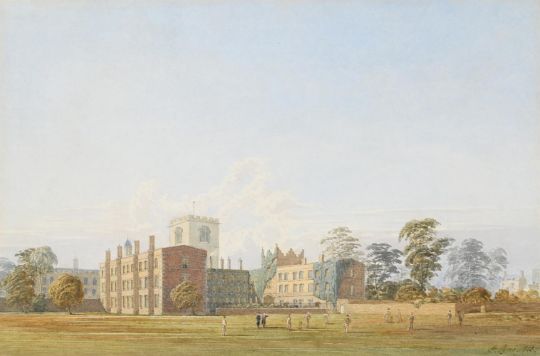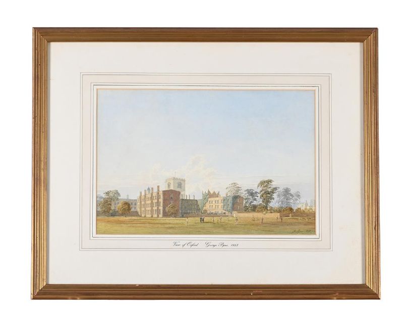 GEORGE PYNE (BRITISH 1800-1884) CRICKET AT JESUS COLLEGE, CAMBRIDGE Pencil and watercolour Signed and dated `1853' (lower right) 21 x 32cm (8¼ x 12½ in.) To be sold without reserve.