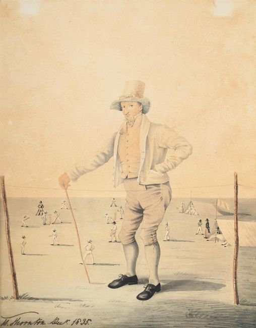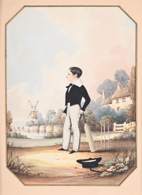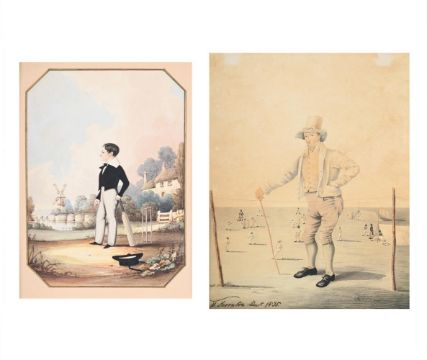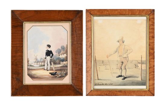 Together with a Portrait of a Gentleman Standing Before a Cricket Match, Possibly John Thornton, English School (19th Century), watercolour (34 x 26cm) (2)