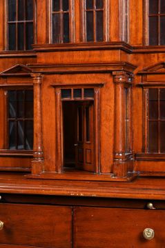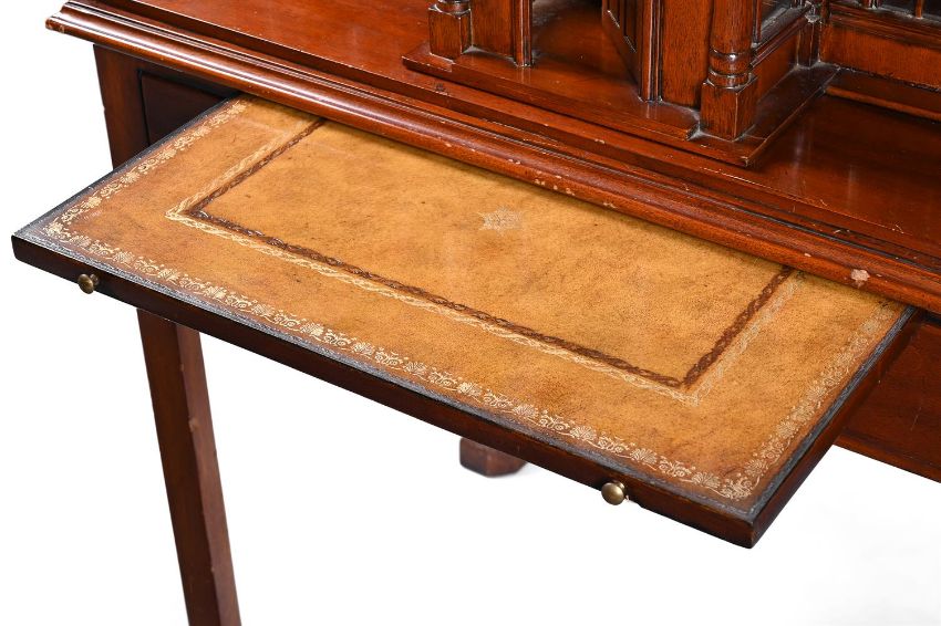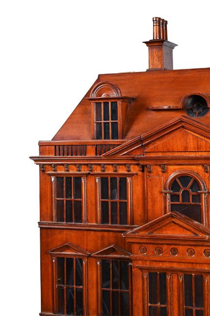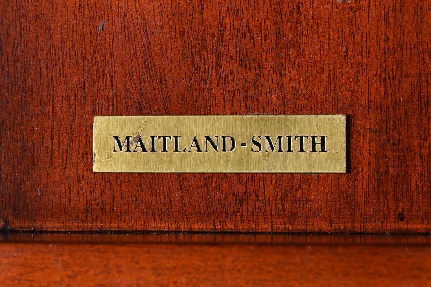 A MAHOGANY 'COUNTRY HOUSE' CABINET BY MAITLAND-SMITH, IN GEORGE III STYLE, 20TH CENTURY The hinged doors opening to a shelved and mirrored interior above a leather inset slide, bearing a brass maker's plaque to one drawer 174cm high, 85cm wide, 54.5cm deep Condition Report: Marks, knocks, scratches and abrasions commensurate with age and use. Some old chips and splits. Some minor old losses including one small window pane to the front door and to some of the moulding to the reverse of the windows. The magnet to the right door does not engage effectively. The right side with some water marks and discolouration. This does not include interior lighting. Please see all additional images as a visual reference to this report.Condition Report Disclaimer