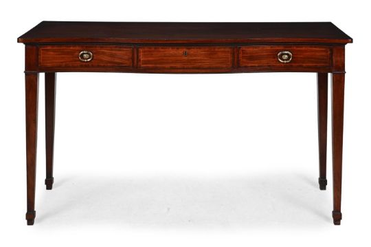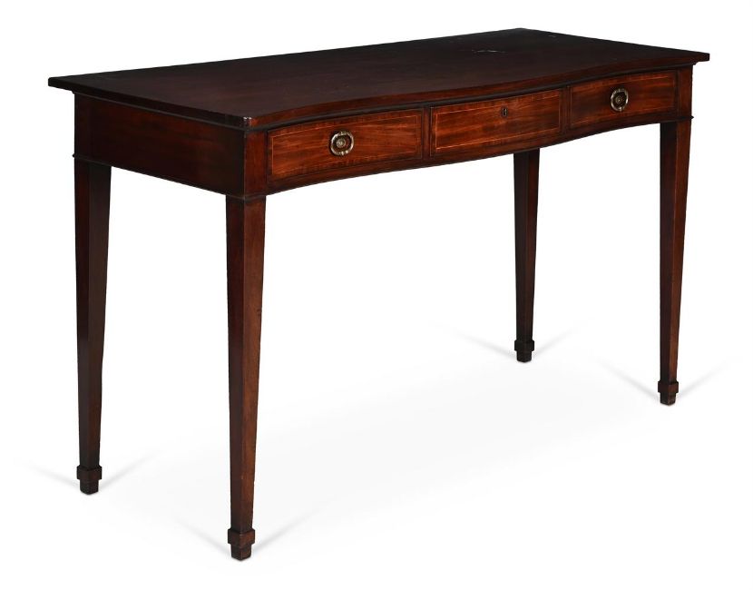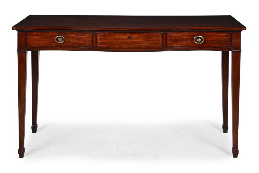 A GEORGE III MAHOGANY SERPENTINE FRONTED SERVING TABLE IN THE MANNER OF GILLOWS, CIRCA 1790 92cm high, 153.5cm wide, 62cm deep