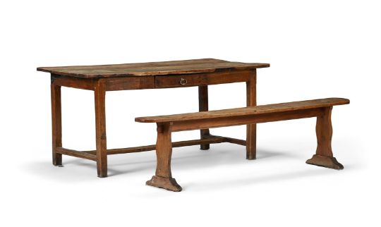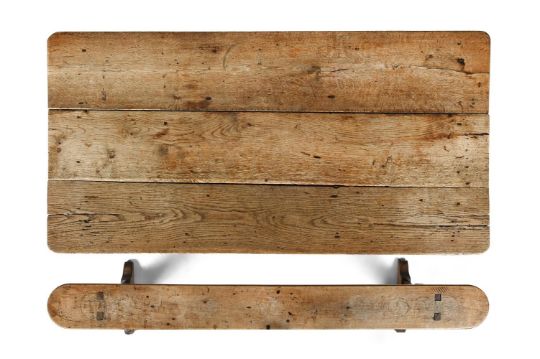 AN OAK FARMHOUSE TABLE AND BENCH
