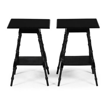 A PAIR OF AESTHETIC MOVEMENT EBONISED WALNUT OCCASIONAL TABLES