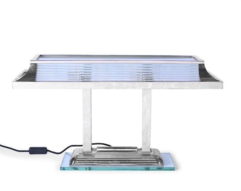 CASA PADRINO (GERMAN, EST. 2007) ATTRIBUTED DESK LAMP; 21ST CENTURY Stainless steel, brass, aluminium, glass 40cm high, 70cm wide, 30cm deep