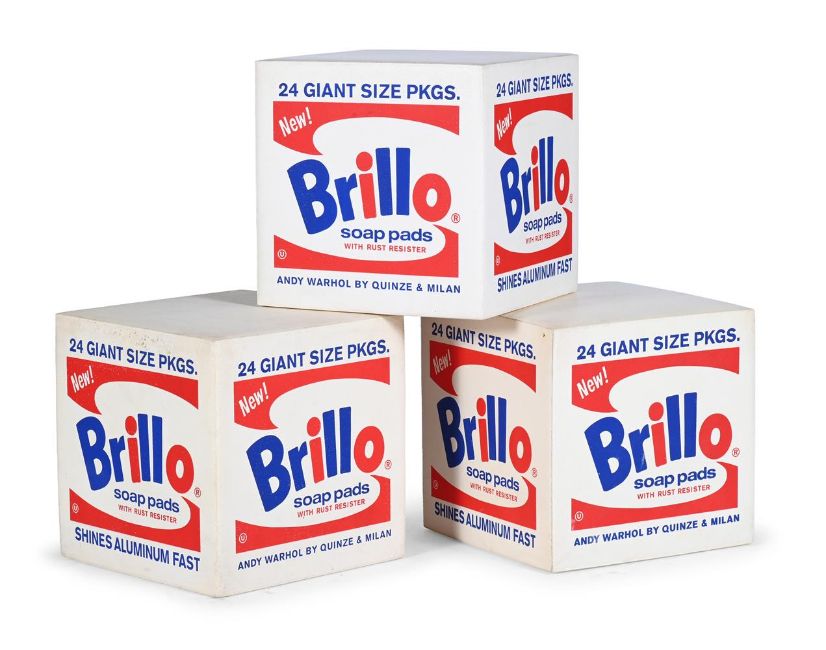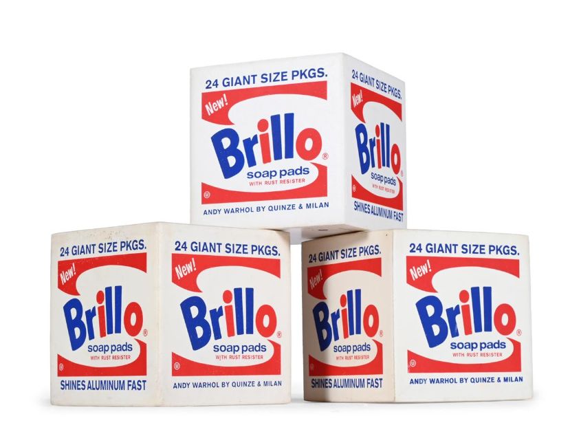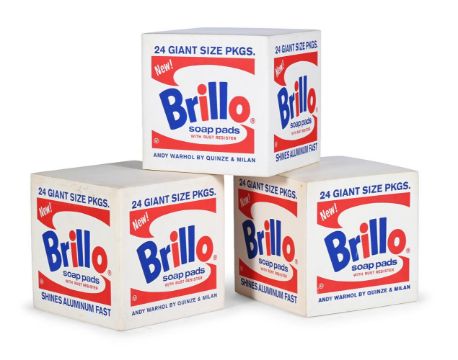ANDY WARHOL (1928-1987) AND QUINZE & MILAN THREE 'BRILLO BOX' POUFS; 2013 Transfer-printed foam rubber 39.5cm high, 39.5cm wide, 39.5cm deep Signed with transfer-printed manufacturer's mark to underside 'Andy Warhol, The Andy Warhol Foundation for The Visual Arts, Inc. Designed by www.quinzeandmilan.com'. The boxes were first unveiled during Milan Design Week in April 2013. A collaboration between design studio Quinze & Milan and The Andy Warhol Foundation for the Visual Arts.