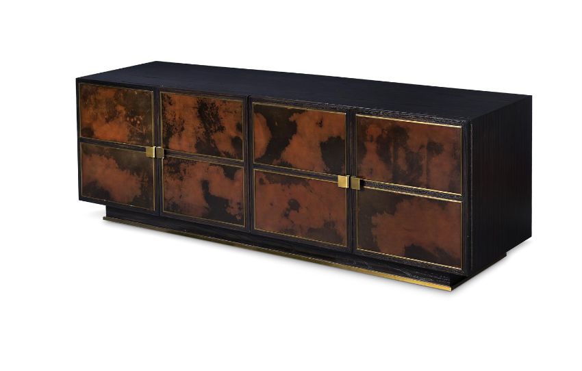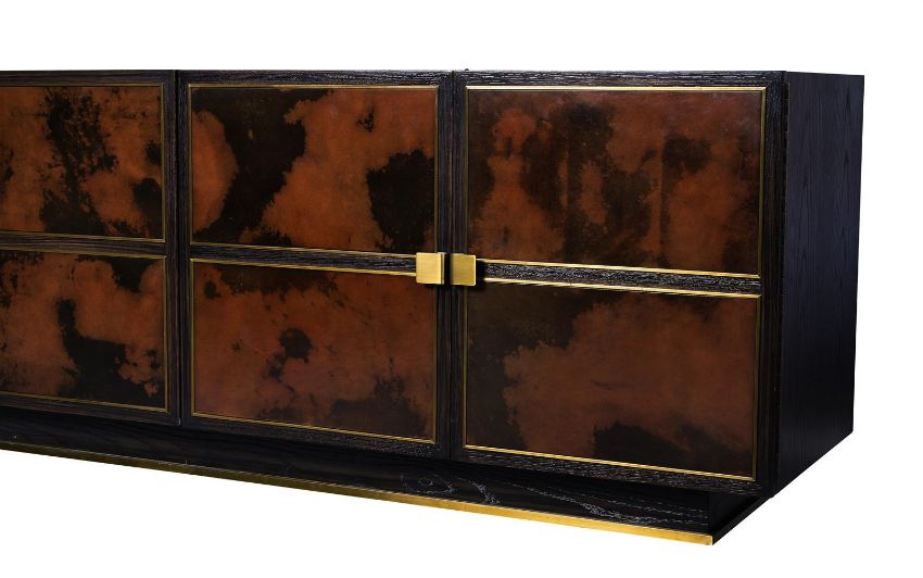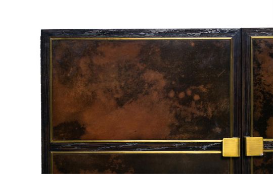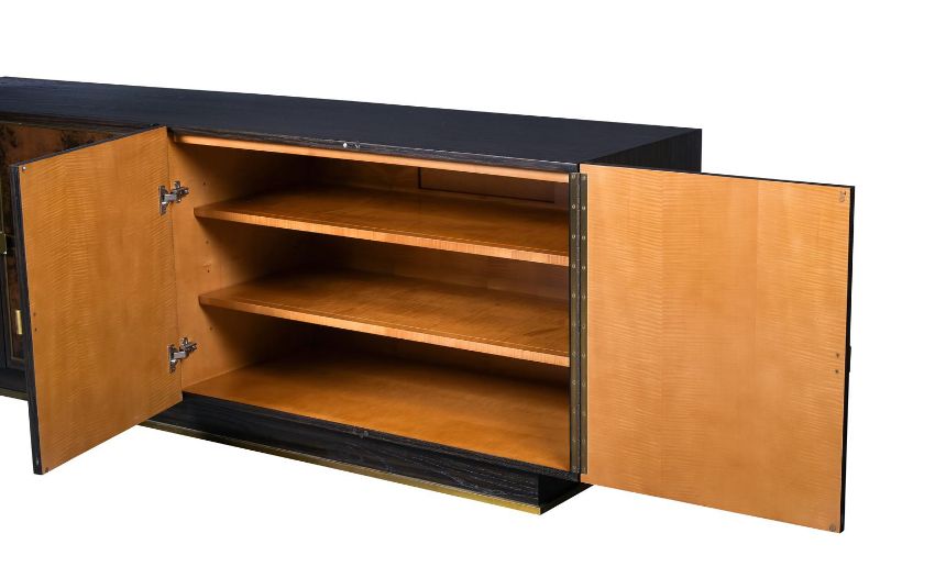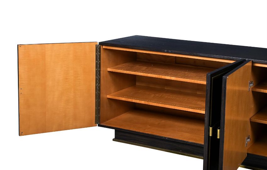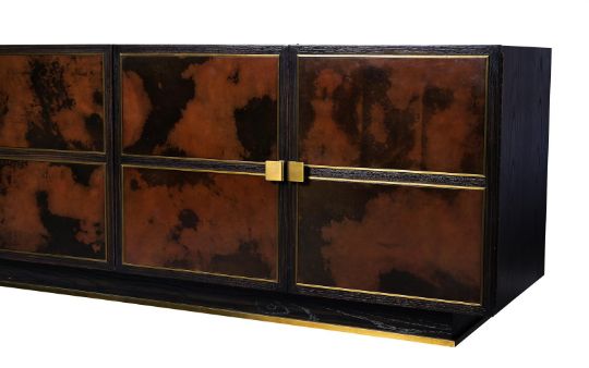 JULIAN CHICHESTER (ENGLISH, EST. 1989) 'LILLE' CABINET/SIDEBOARD; EARLY 21ST CENTURY Ebonised oak, vellum, brass, lined with sycamore 75cm high, 220cm wide, 54.5cm deep