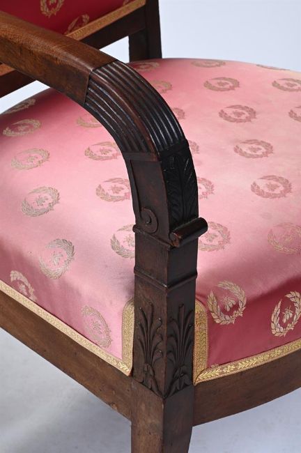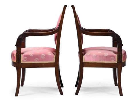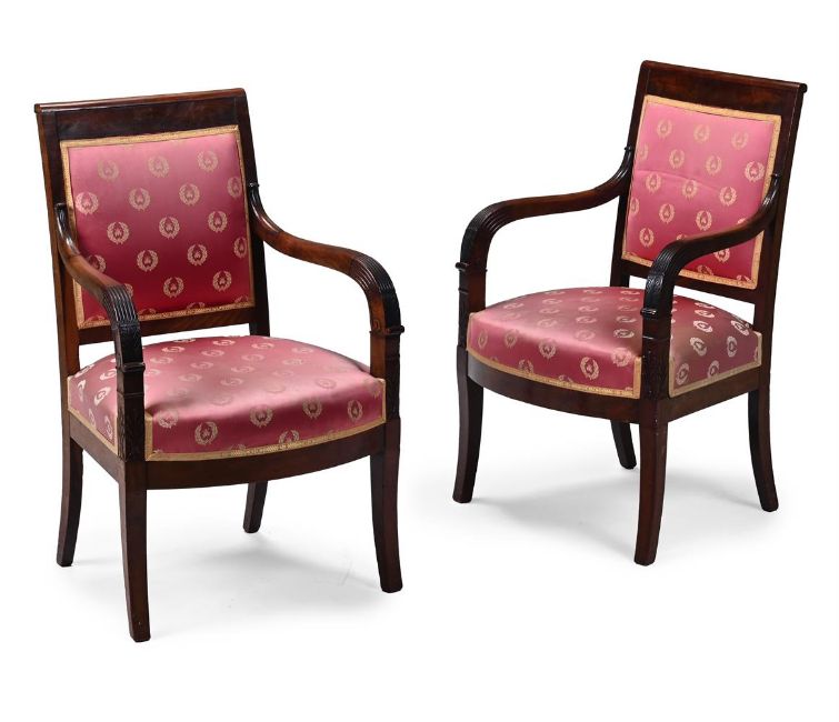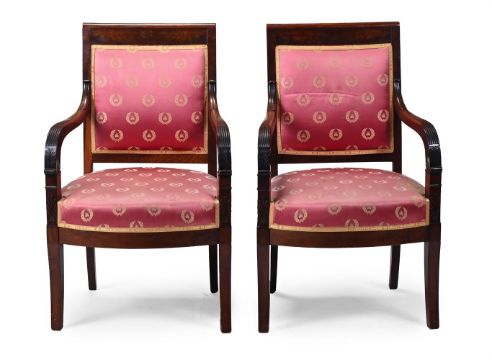 A PAIR OF MAHOGANY ARMCHAIRS IN FRENCH EMPIRE STYLE