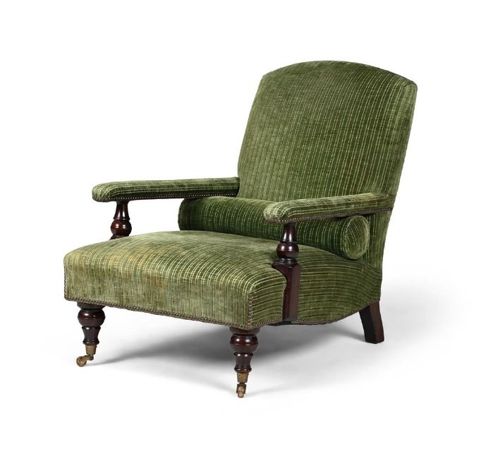 A GEORGE SMITH ARMCHAIR UPHOLSTERED IN VELOURS GASCOIGNE BY LELIEVRE