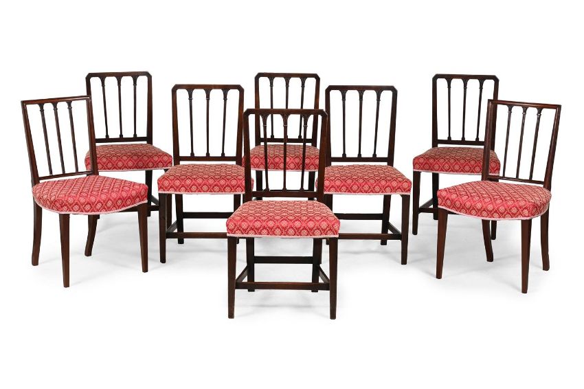 A HARLEQUIN SET OF EIGHT MAHOGANY DINING CHAIRS